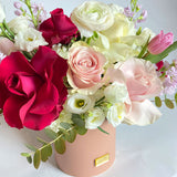 Texture and romance au rendezvous. Make that special someone blush with the soft-to-bold shades of pink featured in this arrangement. Set in our pink signature vase, this beautiful composition is wrapped with love and delivered with care. For a complementary touch, consider replacing it with our Blush & White Roses for a softer aesthetic or enhancing it with the timeless elegance of Romance for an unforgettable gift.