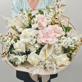 Imagine a bouquet with soft, gentle colors that create a tranquil and romantic atmosphere. Our Soft Serenity Bouquet features a harmonious blend of delicate hues designed to evoke a sense of calm and elegance. Perfect for any special occasion, this arrangement embodies a serene and loving vibe, making it an ideal choice to celebrate cherished moments with grace and beauty.