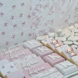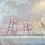 Every detail of this tray can be tailored to honor the new arrival. We personalize the display with her name, customize the initial on the treats, and coordinate the colors and patterns to match your vision perfectly.