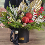 Celebrate the festive season with our Classic Holiday Arrangement, which features charming Christmas decorations and long-lasting greens. This beautiful arrangement is designed to brighten your home and maintain its freshness for up to one month. Available in three different sizes to fit any space and occasion. For more festive options, explore our Silver Holiday Wreath and The Perfect Gift.