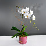 Minimal and graceful, the Pure Orchid arrangement showcases a single stem of white Phalaenopsis orchid, accented with natural moss and driftwood. Nestled in a glossy white ceramic pot, it’s the definition of refined simplicity — perfect for elegant gifting or elevating your home. For a complementary touch of serenity, consider the White Enchanted Dome or pair it with the subtle charm of the Blushing Eternity Roses. If you're looking to build a peaceful ambiance, the Soy Signature Candle makes the perfect finishing element.