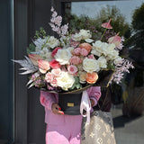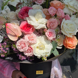 Flower Type: A premium, seasonal mix including garden roses, anthuriums, spray roses, and other complementary blooms. Please note: flower selection is subject to seasonal availability to ensure the highest quality.